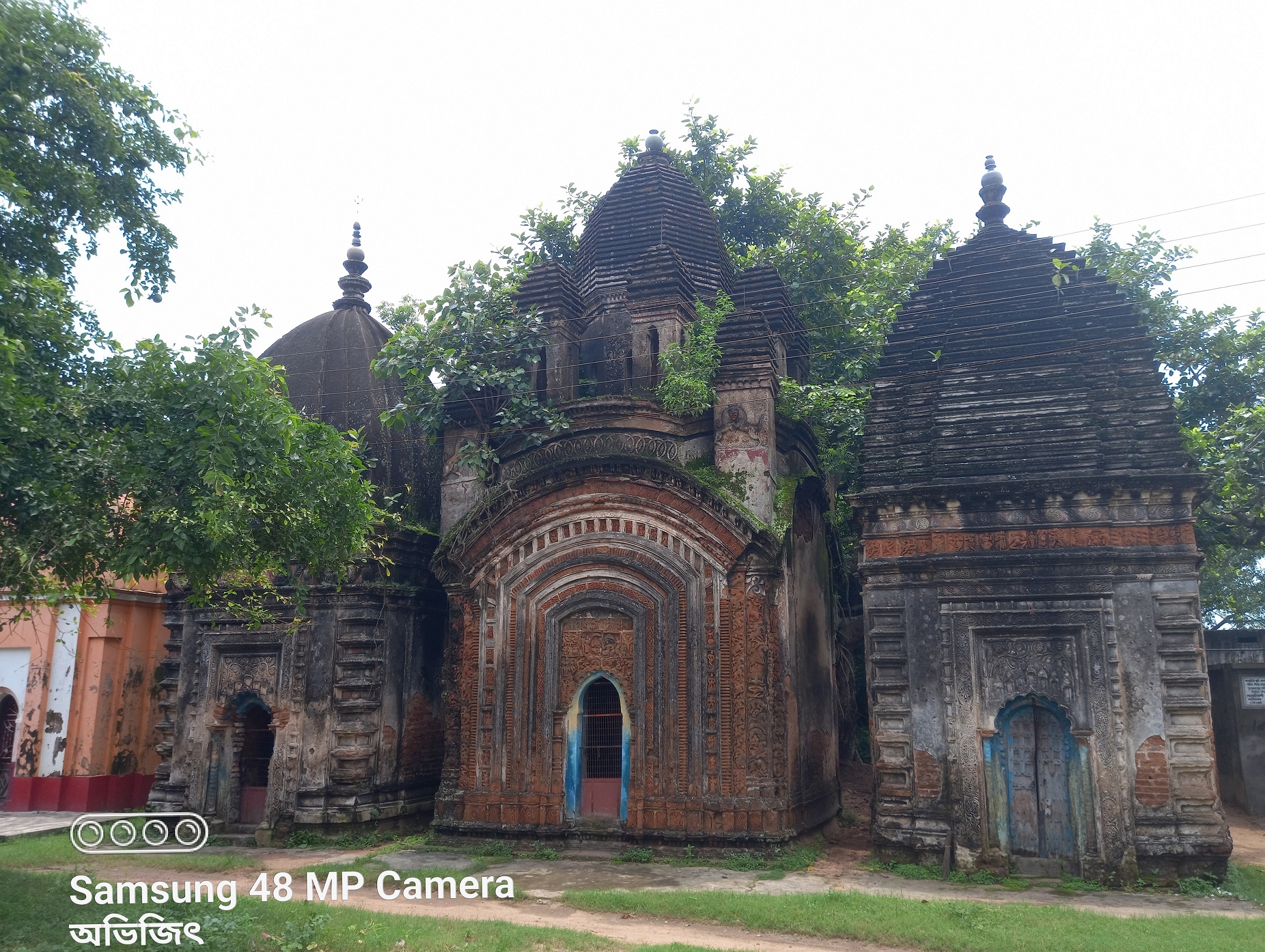 There is a Triodasharatna temple in Ojhapara, Dubrajpur, Birbhum district. The area is also called Namopara. The temples are built with a cluster of five Shiva temples. Two Deul style temples are inserted on either side of the Triodasharatna temple.Although the temples are side by side, they are without balconies. Two more temples are located nearby. All of them are dedicated to the god Shiva. It is known in the area as the Pancha Shiva Temples.
