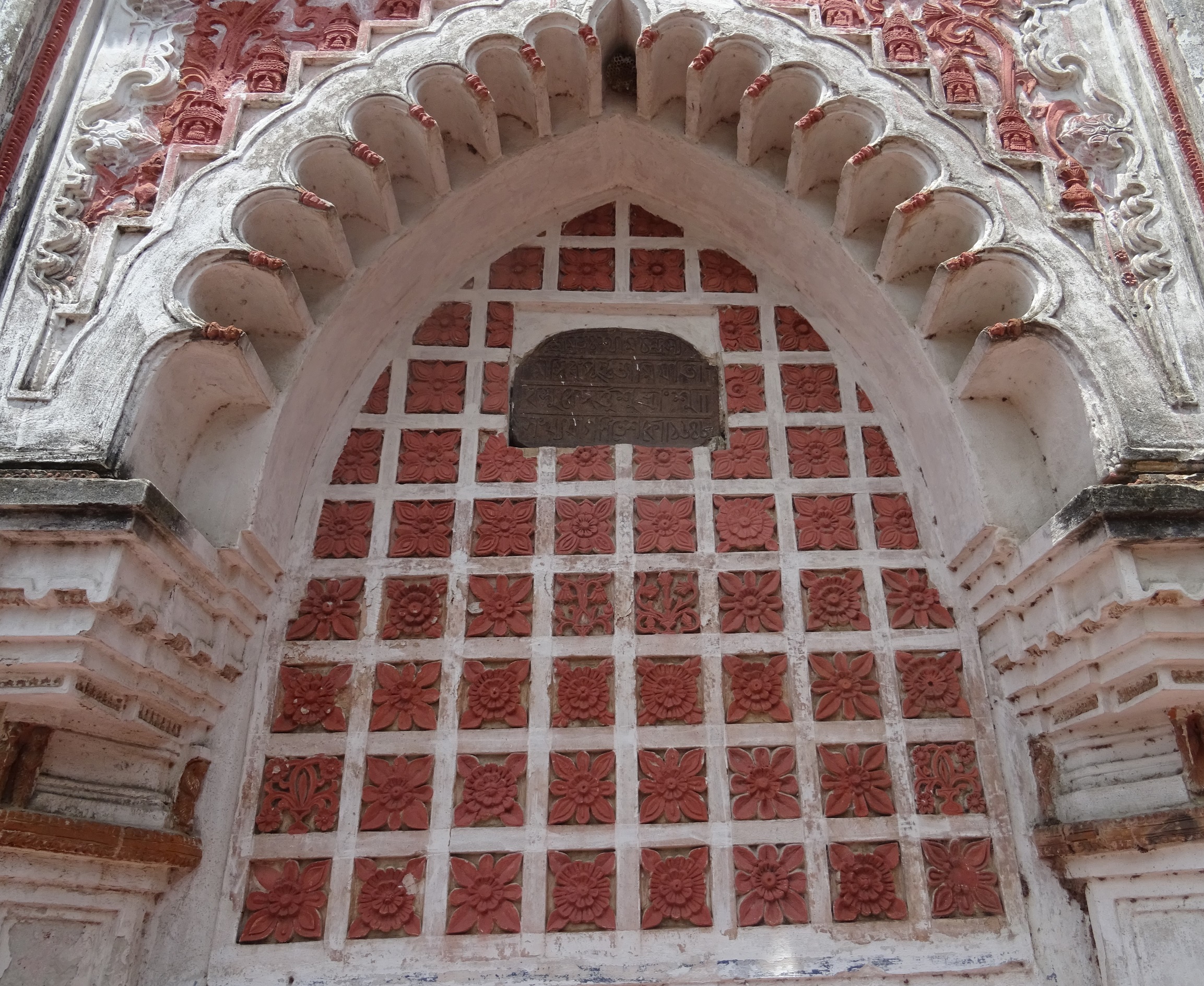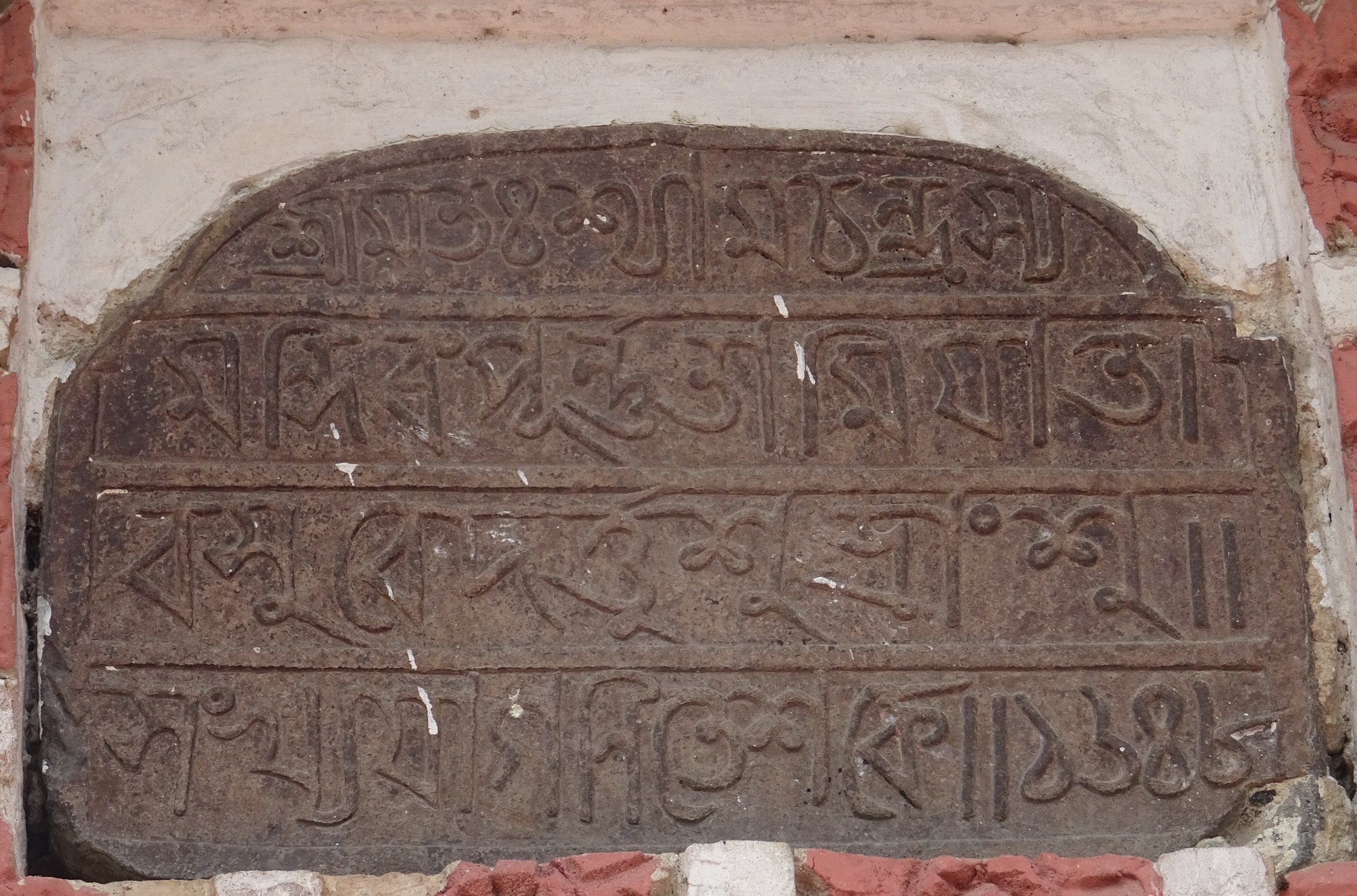 খিলানের নিচে পাথরের প্রতিষ্ঠা লিপিটি এই রকম ।