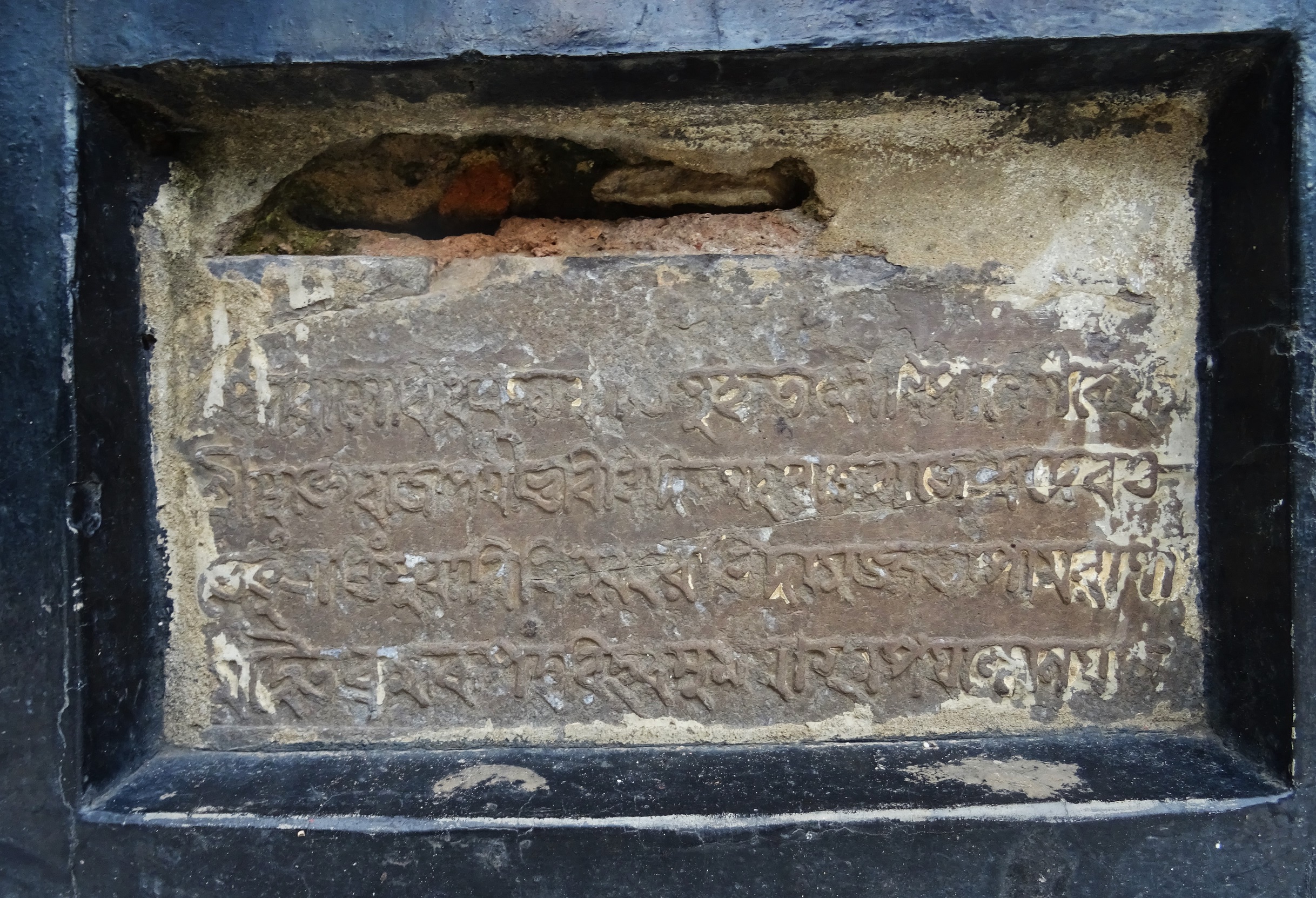 মন্দিরটির কমই সংলগ্ন পাদপিঠে চার লাইনের প্রতিষ্ঠা ফলকটি এইরকম -