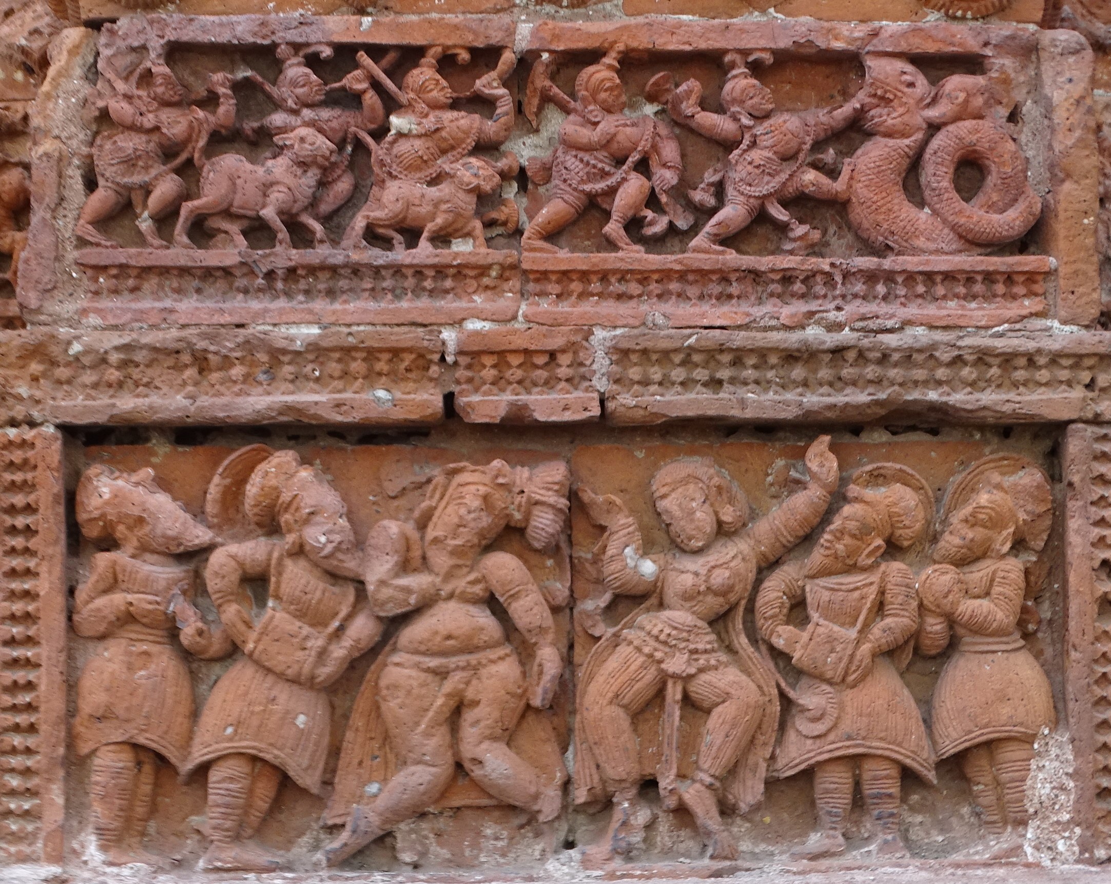 The octagonal tower shaped rooftop is built on a bow-shaped arched structure. The Ek Ratna Temple on a large arched structure is a feature of the Hooghly district.