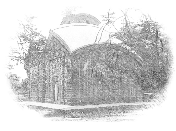 To create a Jor Bangla temple, two such Do Chala temples are built side by side, with their middle points intersecting. This design results in a temple with minimal differences in length and width. Occasionally, a connecting ridge is visible between the two temples. In rare cases, three Do Chala temples are built side by side, forming an exceptional and complex architectural layout. Due to its complicated design, this style did not gain widespread popularity.