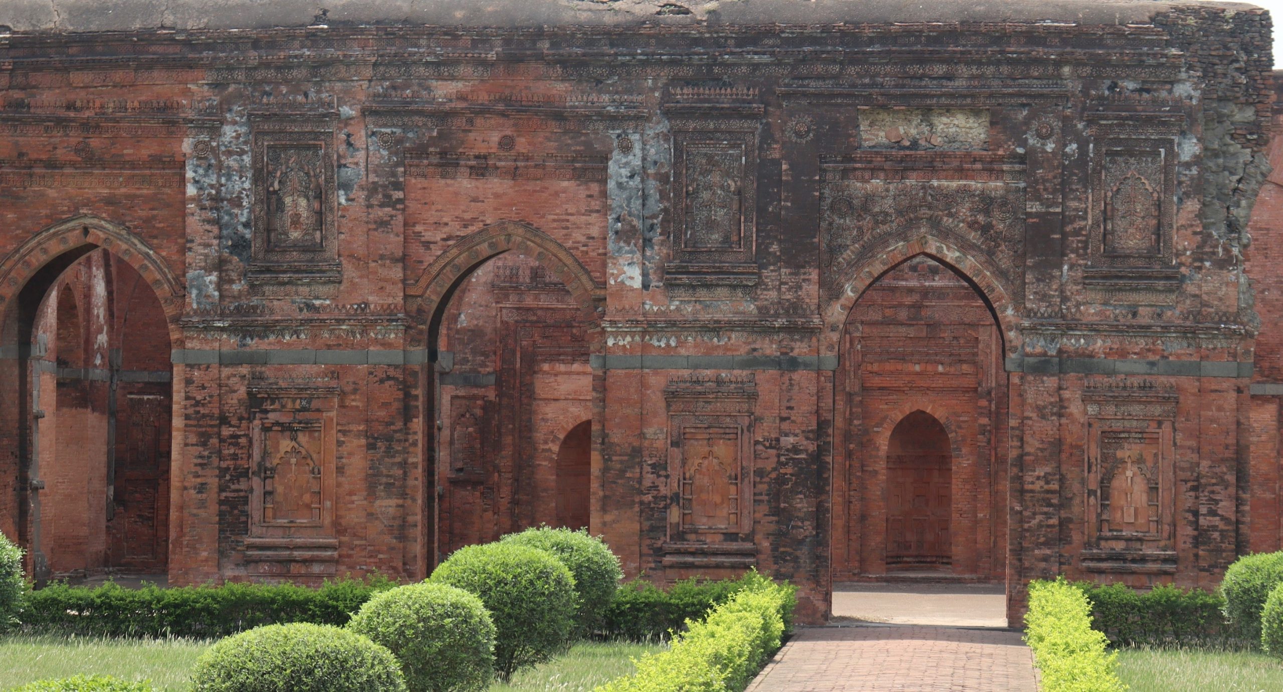 The structure has five arched doorways at the front. The outer wall is divided into several large rectangles, all decorated with various designs. Among the decorations inside the mosque, the decorations from top to bottom, including vine leaves, chains, and bells, are extremely beautiful.