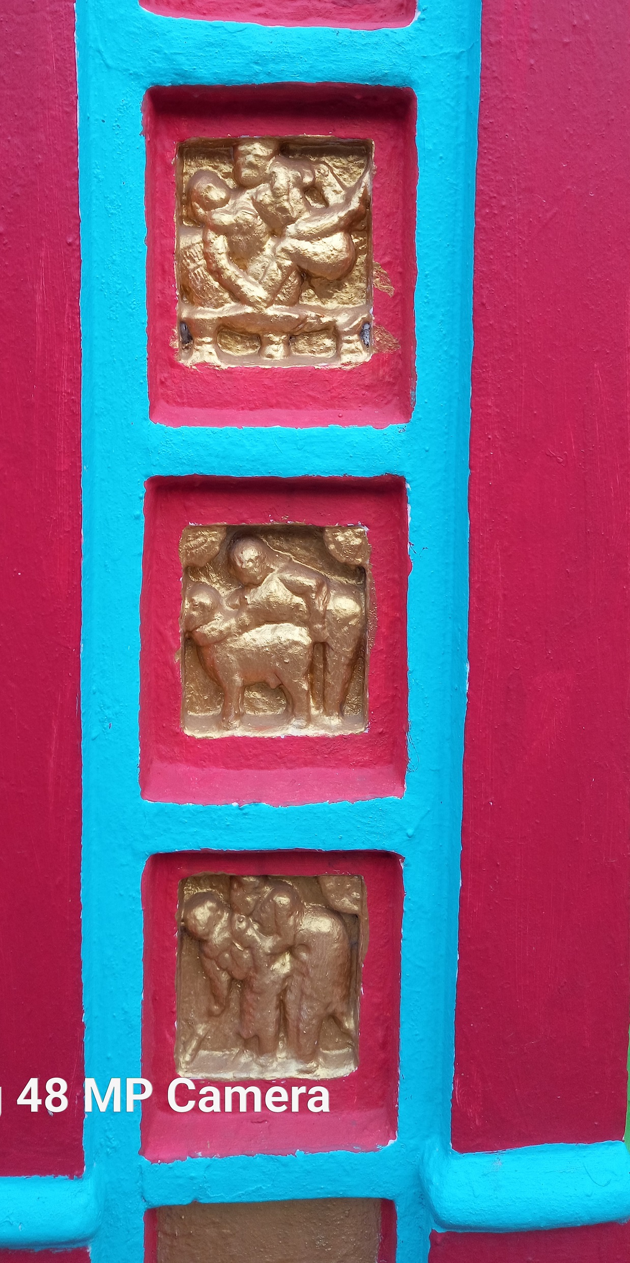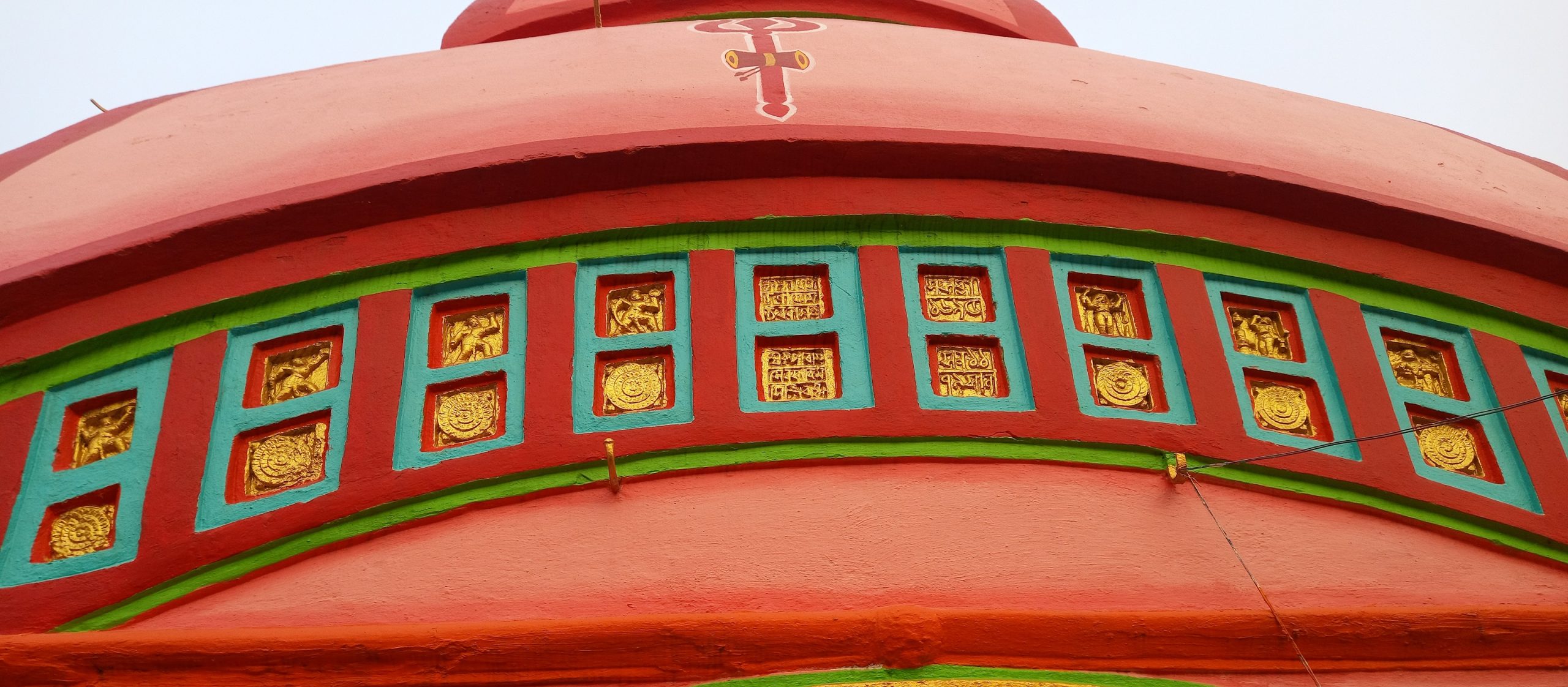 The temple, which was once beautifully crafted with terracotta panels, has now lost much of its glory due to painting. In particular, the terracotta panels have been covered with a golden coating.