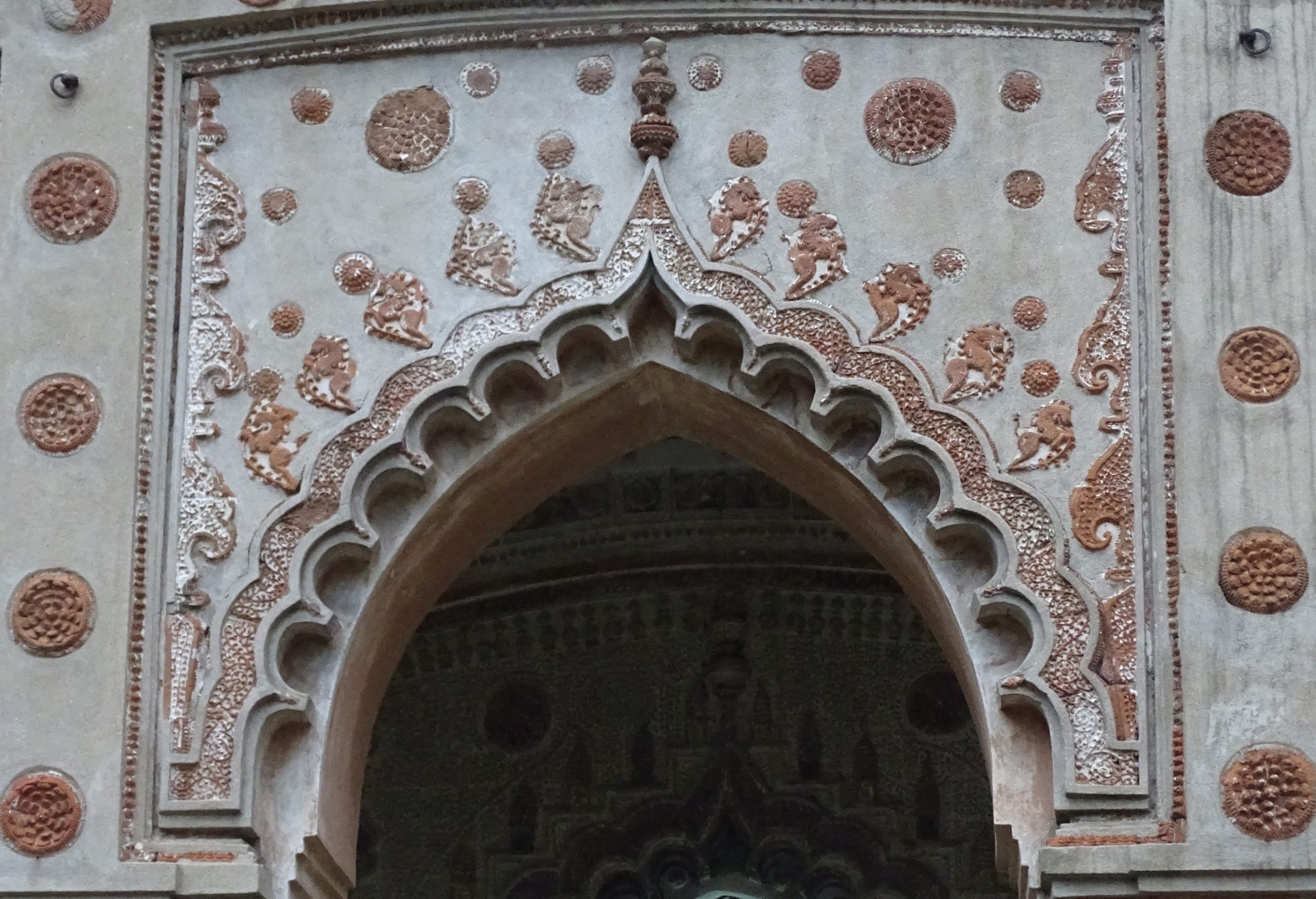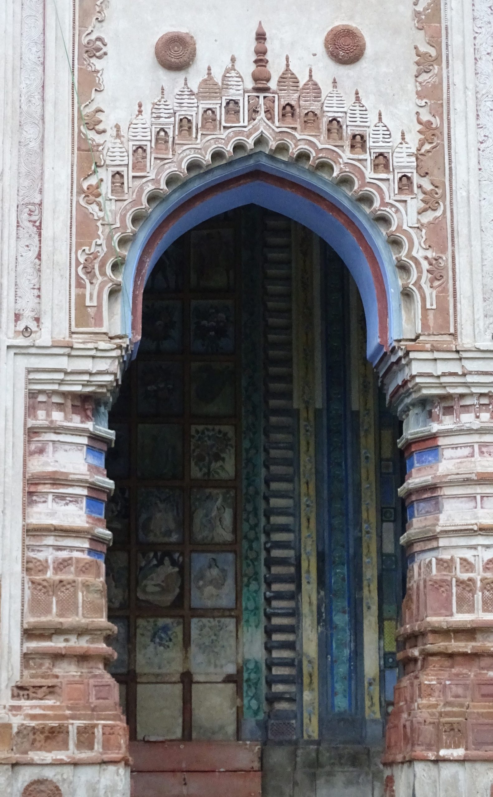 This south-facing temple has a curved cornice. The entrance is influenced by Islamic architectural styles.