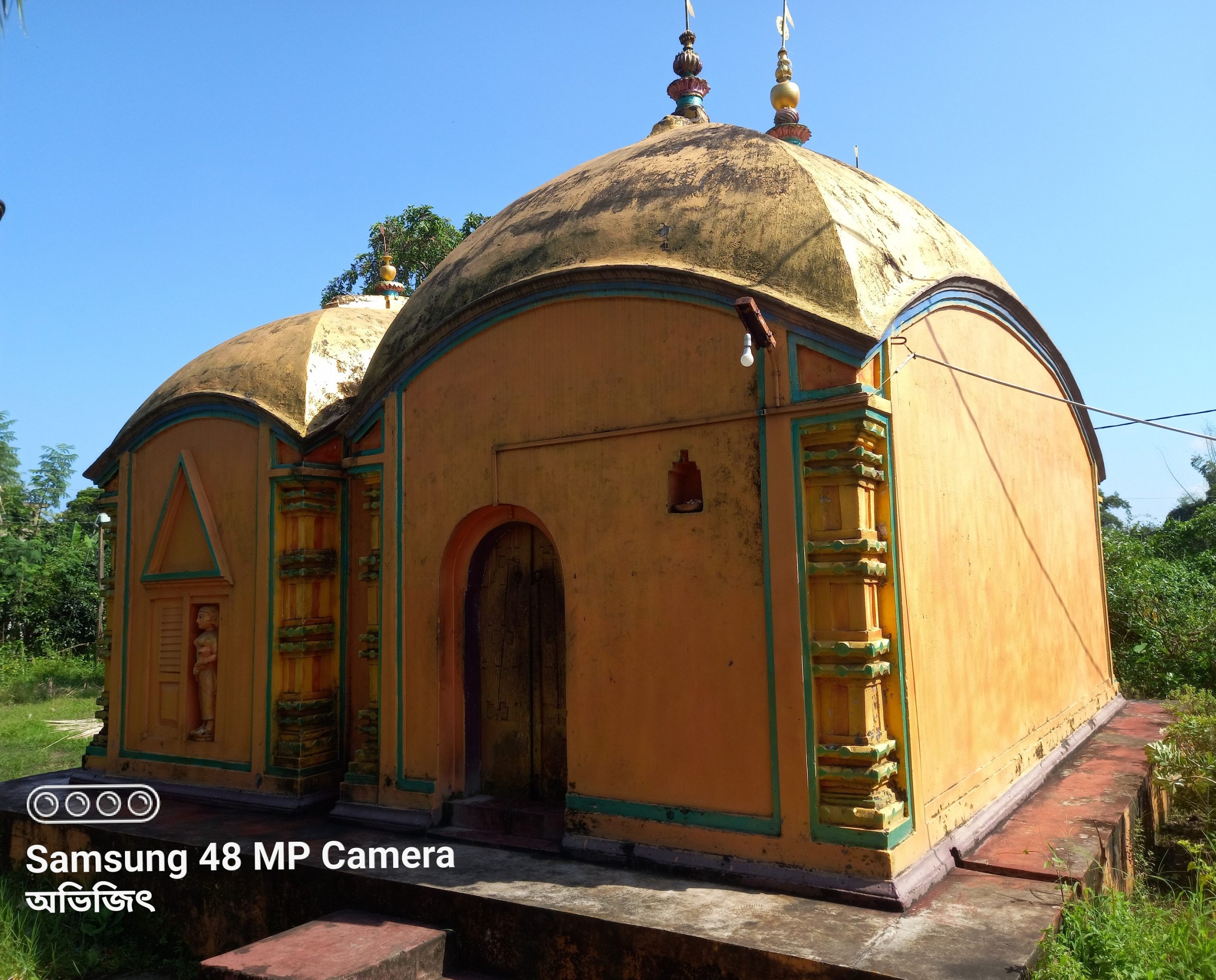 In this case, we see an example of a style close to that shown by David McCutcheon in the Putia temple complex in Rajshahi district of present Bangladesh. However, in this case, a dochala temple was joined together between two four-chala temples.