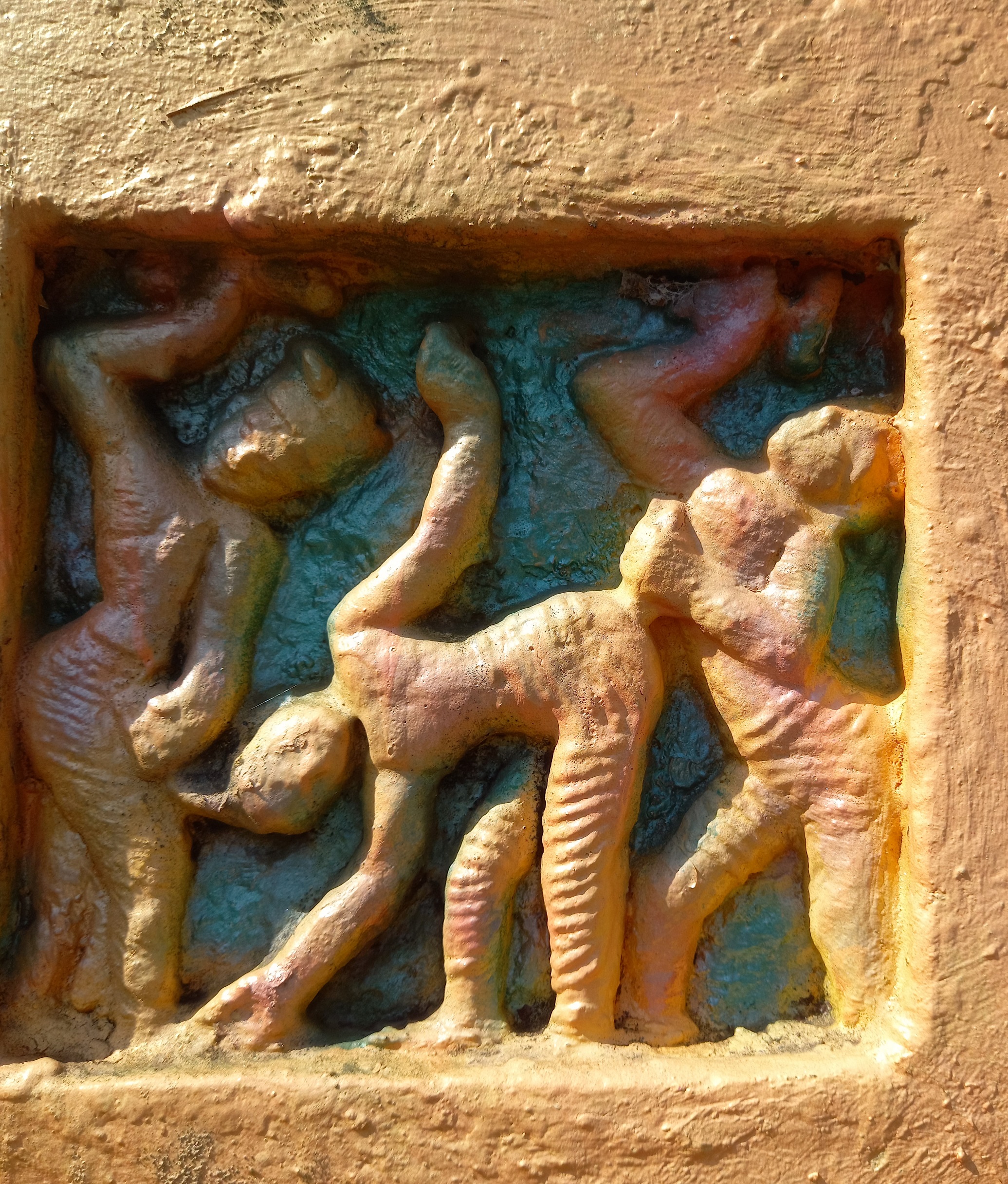 The brick temple has several terracotta panels. The terracotta has lost its beauty due to painting at different times.