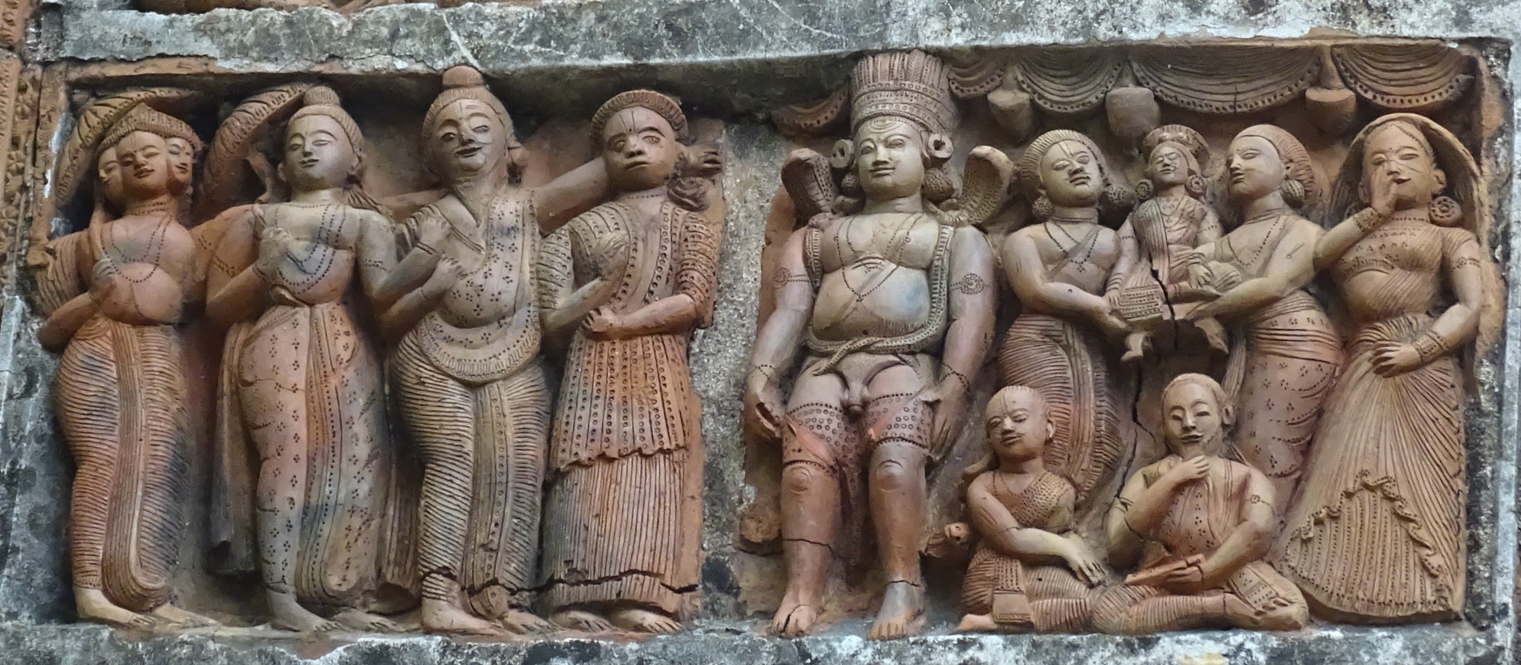 The characteristic of these spires is that three on each four side of the temple roof on the first floor and three on each side of the temple roof on the second floor, and a central spire formed this 25-spire temple The temple has a foundation stone, although it has largely disappeared. It is known from this that Hari Sutradhar built this temple in 1252 bangla year, 1767 sakabda,.