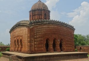 বিষ্ণুপুরের নগর দেবতা মদনমোহনের এক রত্ন মন্দিরটি এক কথায় অনবদ্য। মাকড়া পাথরের ভিত্তি ভূমির উপরে টেরাকোটা অলঙ্করণ সমৃদ্ধ মন্দিরটি তৈরি হয়েছিল ১৬৯৪ খ্রিস্টাব্দে। ধনুক আকৃতি বাঁকা চালার উপরে স্থাপিত শিখরটি অনবদ্য। মন্দিরের প্রতিষ্ঠা লিপিটি এইরকম –“শ্রী রাধাব্রজরাজনন্দন পদাম্ভজেষু তৎ প্রীতয়ে মল্লাব্দে ফনীরাজশীর্ষগনিতে মাসে শুচৌ নির্মলেসৌধং সুন্দররত্নমন্দিরমিদং সার্ধংস্বচেতোহলিনাশ্রীমদ্দুর্জন সিংহ ভুমিপতিনা দত্তং বিশুদ্ধাত্মনা ১০০০”এটি পাঠে বোঝা যায় […]