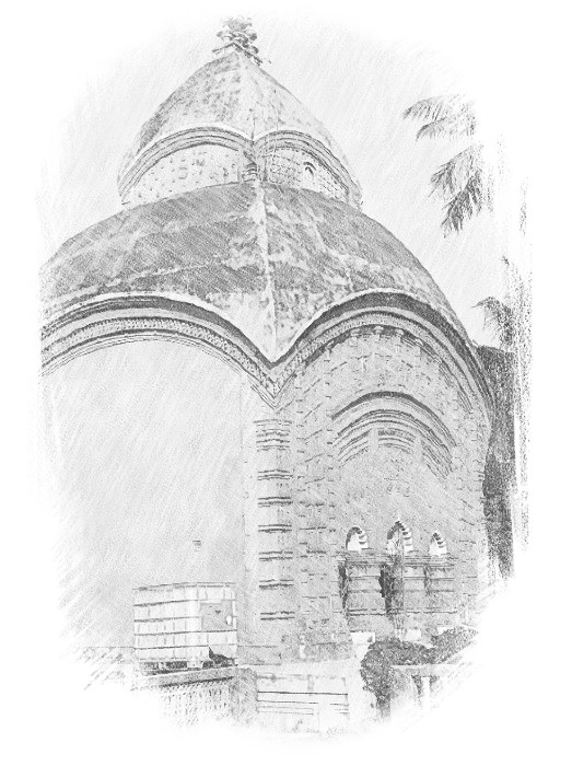 Bengal boasts a unique ‘hut style’ in house construction, which has also influenced temple architecture. The  Bengali cottage, made of straw, mud, and bamboo, shares a striking resemblance with temple designs. Early temples in Bengal were built in the Ek Bangla Dochala, Ek Bangla Char Chala, and Jor Bangla styles, which later evolved to feature four, eight, and twelve chalas (roofs). This progression was a natural extension of traditional house-building techniques employed by rural artisans.