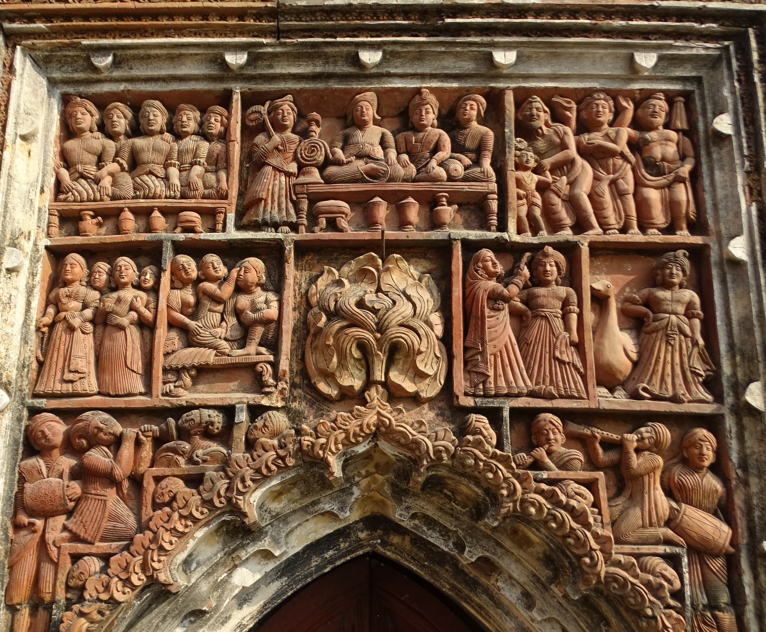 This octagonal temple faces south. This temple is very rich in terracotta panels. The European influence is evident in the temple terracotta panels.